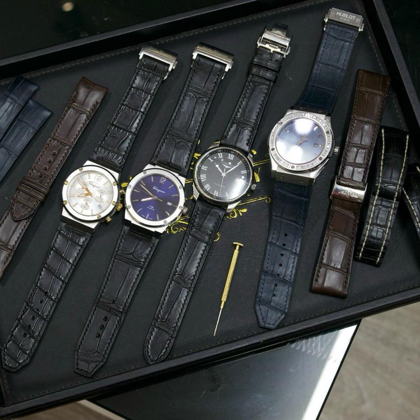 Thay dây đồng hồ Hublot da cá sấu Pháp.